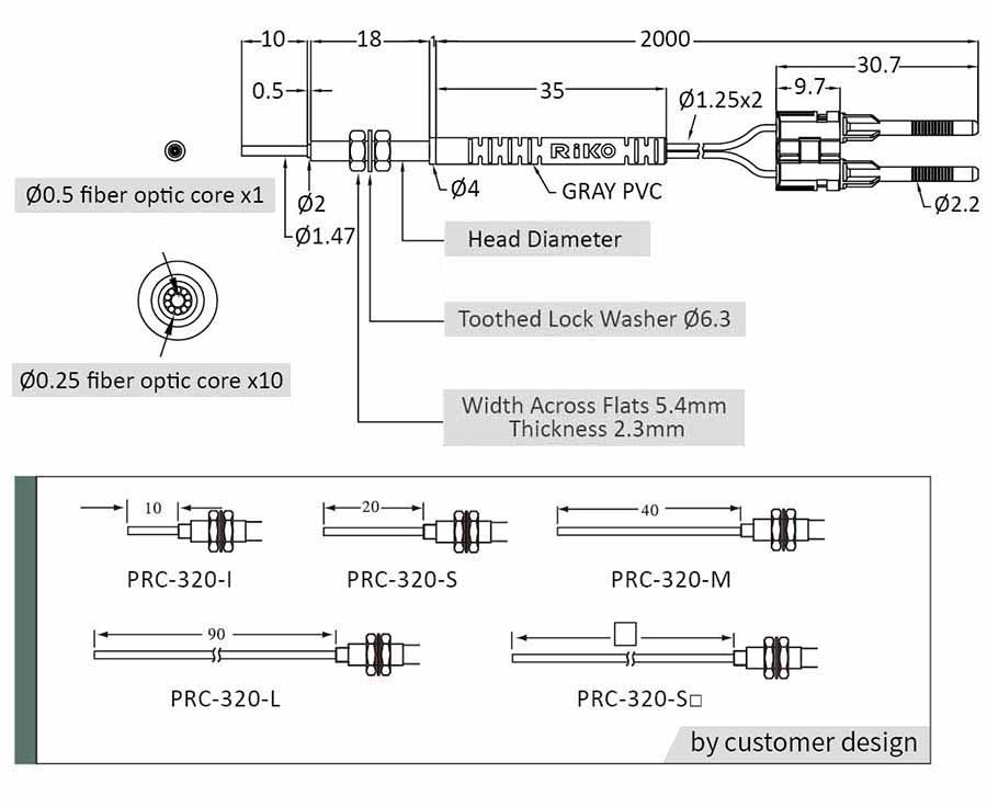 | Model | Reflective M3 Anti-Bending Fiber Optics Sensor |
