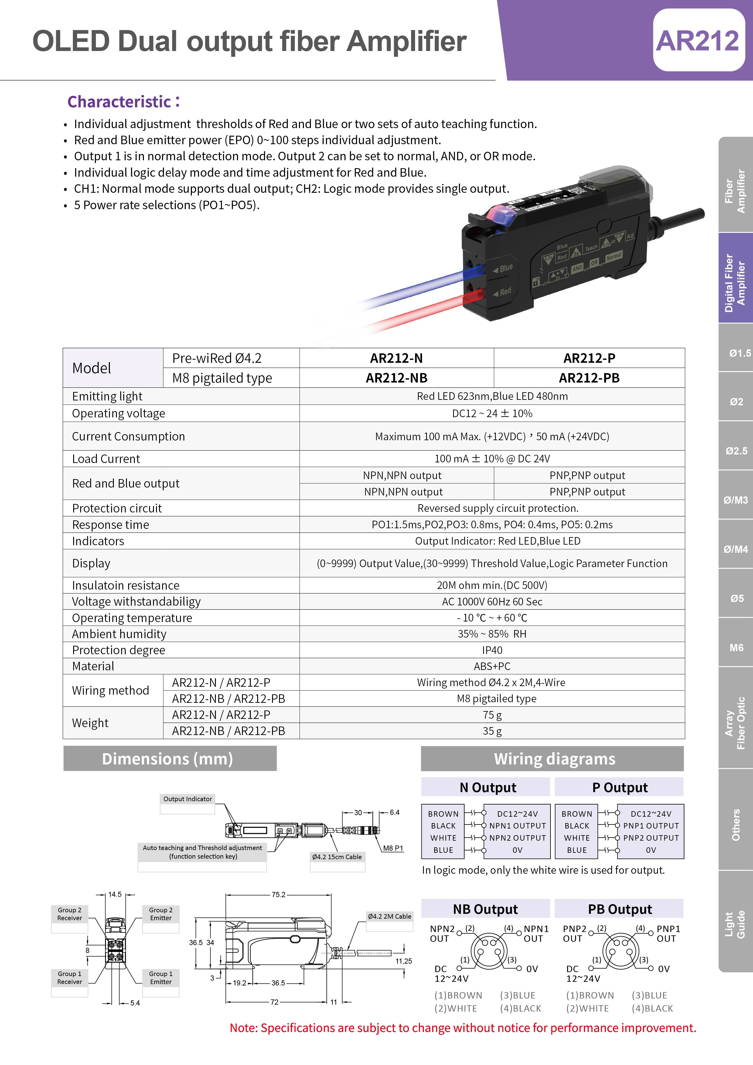 • Individual adjustment thresholds of Red and Blue or two sets of auto teaching function.