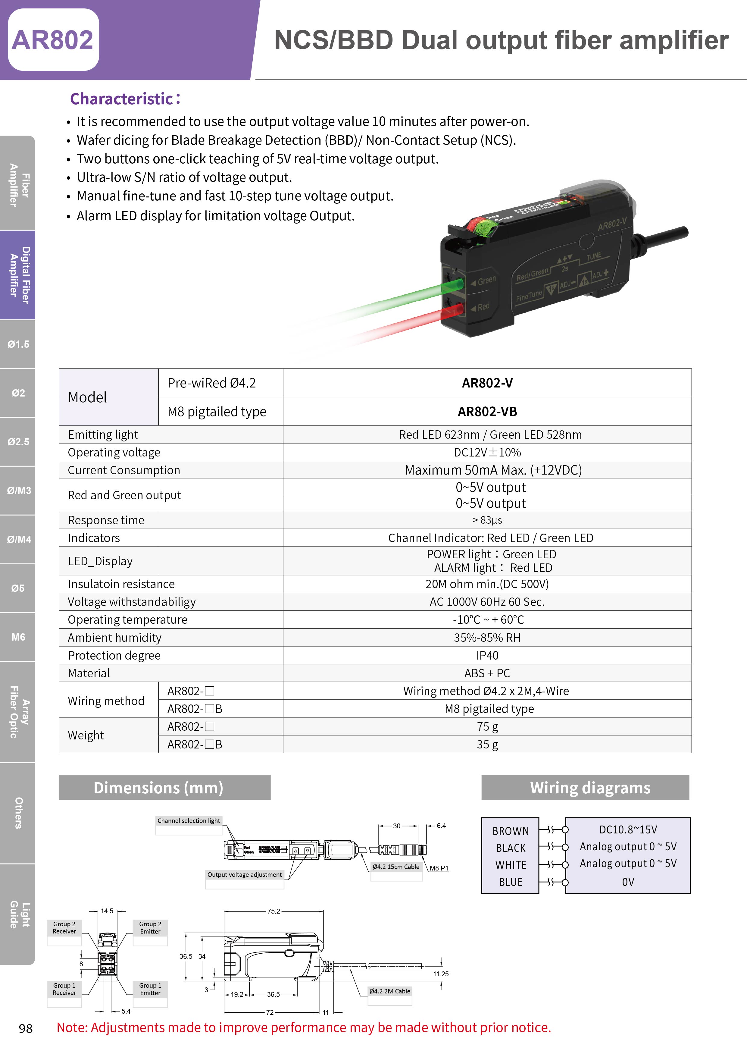 • Ultra-low S/N ratio of voltage output.