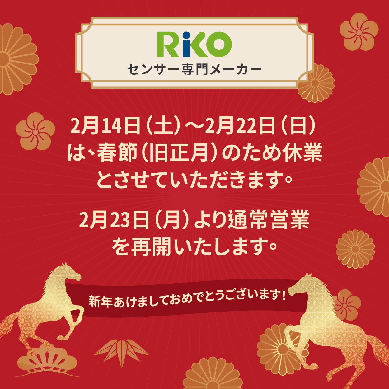 旧正月休暇のお知らせ