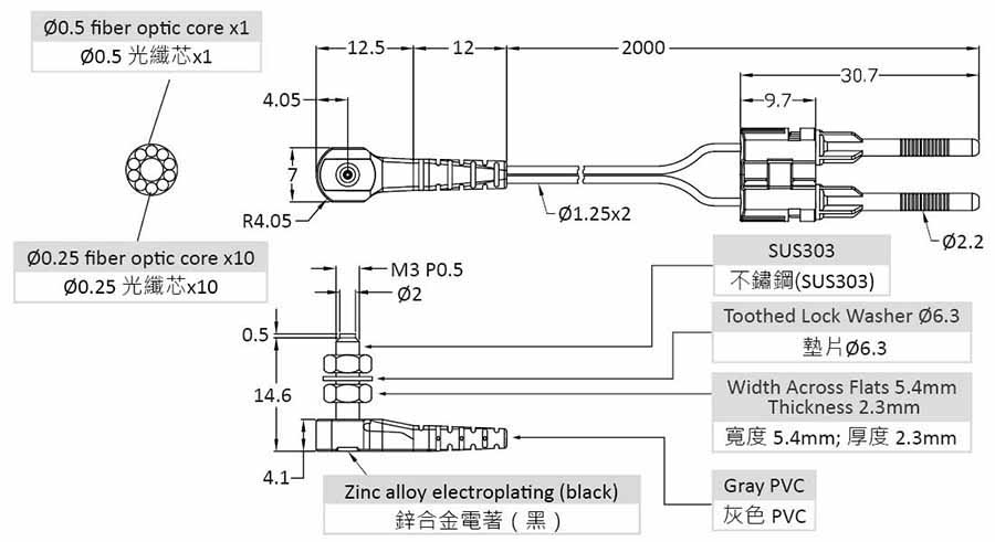 90° M3 耐彎抗拉光纖