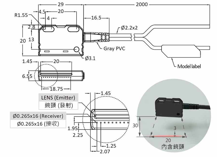 • 感應範圍: 20 mm
