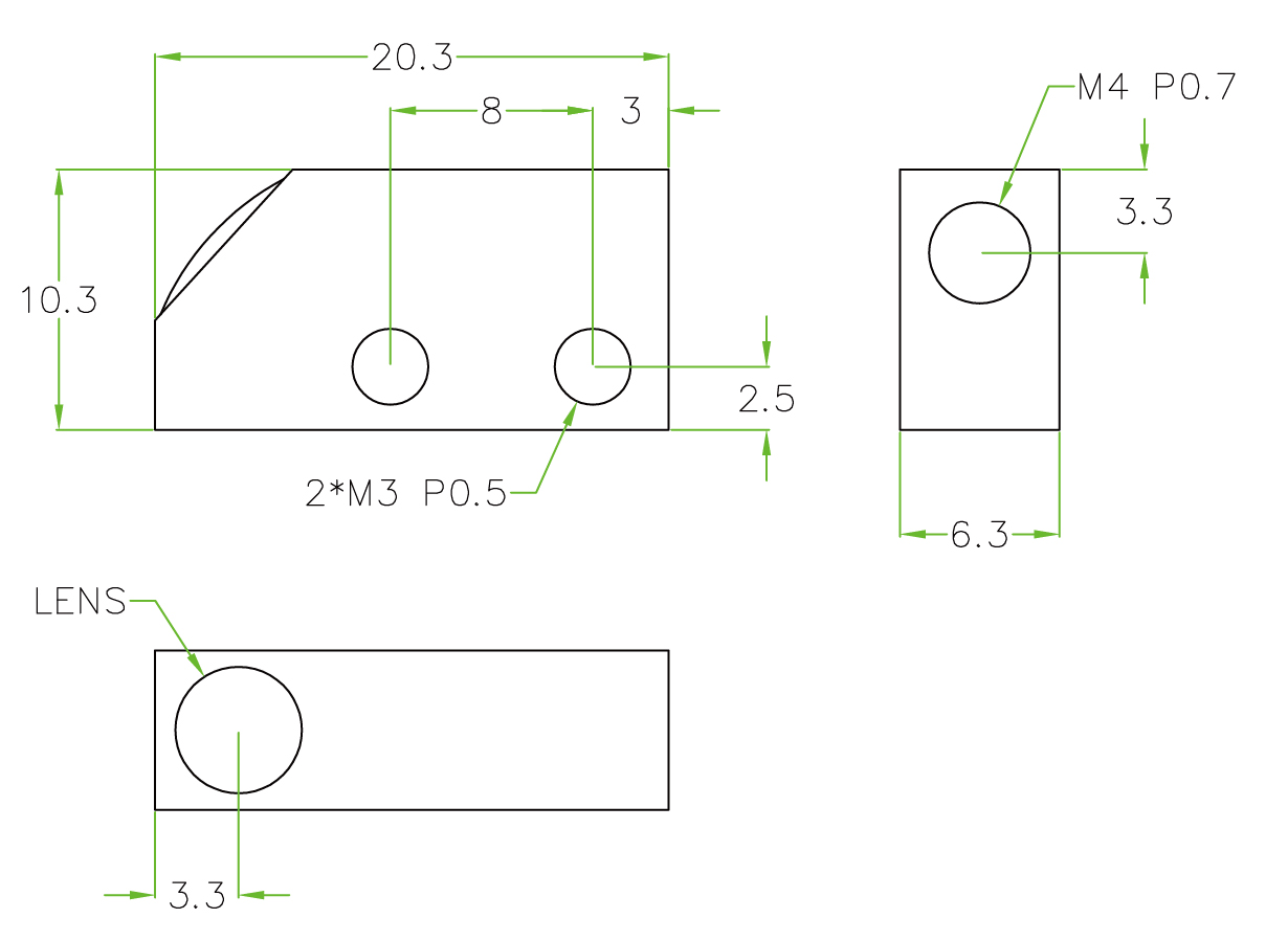 • 加裝FLS-M04,在距離13mm到30mm處光纖可聚焦成一直徑0.5mm到3.0mm的光點。
